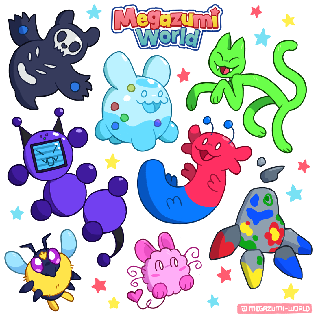 There are a variety of Megazumis, currently there are around 60 popular species of pet. The most commonly seen are: Woobi, Mewlien, Mushpup, Stonét, Cheeby, Goobun and Num-Num. The popularity of pets can depend on contemporary fads and the temperament of pet species.