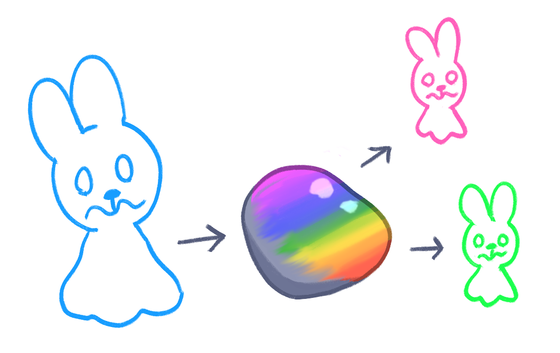 Megazumis can be found in a variety of different colors! For example: a Goobun can naturally be blue, green, or pink. And these colors can be changed with magical stones known as Hue Stones.